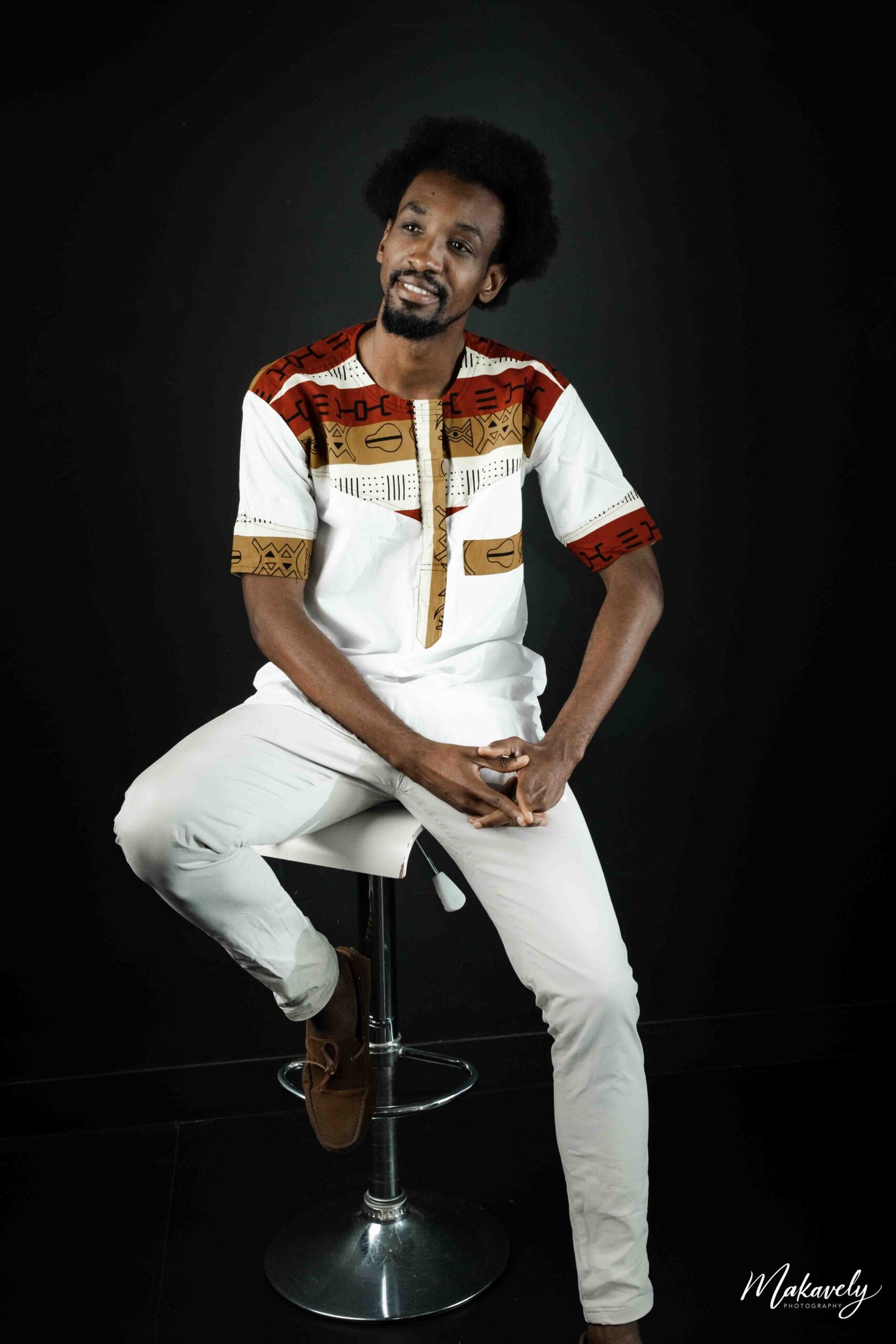 From the moment Elhadj arrived, the approach was simple: define the use of the photographs (book, social media, posters, workshop announcements), align on the message to communicate, then build a visual direction that supports it. We chose a minimalist studio setup on purpose — neutral background, controlled lighting, and sharp framing — because in portrait work like this, everything depends on presence. The face, the eyes, the posture, the quiet confidence of someone who leads others. When the composition is stripped down, what remains is truth.